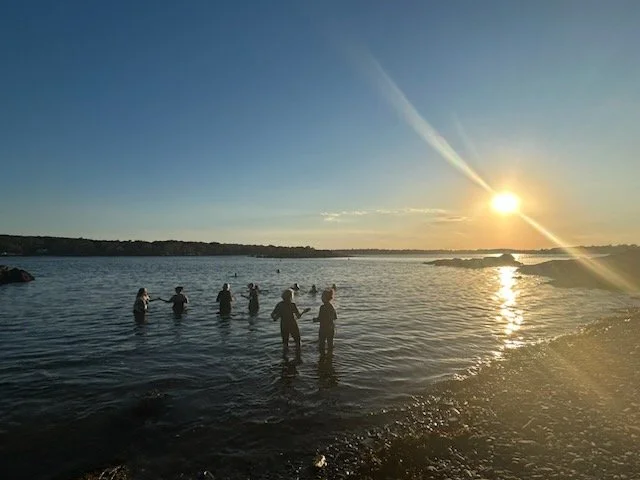 The call goes out. The winds and the tides have been assessed- who’s in? Every day, despite the wind, regardless of the plummeting temperatures, my hearty selkie sisters walk into the sea. We’ve adorned our selves with layers of wool, lycra, and neoprene for the central nervous system shock that is to come. Overcoming the resistance to the obviously ludicrous notion of swimming off season is easier when one is not alone. Words alone fail to capture the exuberant shrieks and howls that uproariously emit as we enter the sea. Water and air hovering either side fifty degrees… it is among these selkies I feel most alive and free.